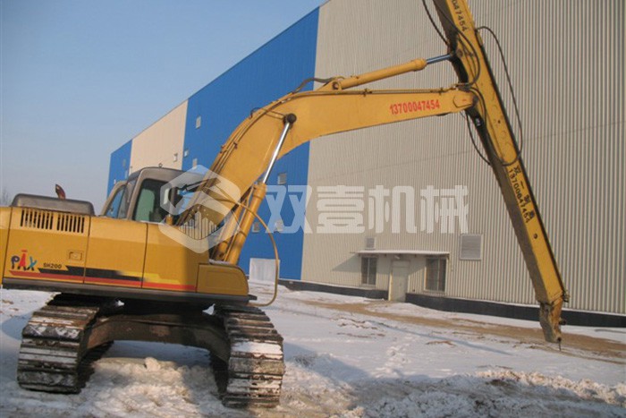 兩節(jié)伸縮臂是雙壹機械2005年自主研發(fā)的突破性產(chǎn)品,被多家同行模仿制造,從未被超越;臂長度19米,采用高噸位的三機聯(lián)動折彎設備折成U型,雙U型對接的焊接方式。